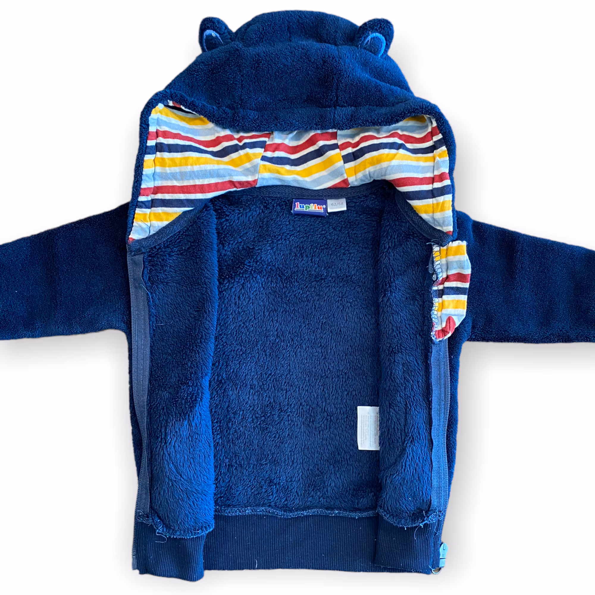Teddyjacka, Lupilu, stl 62/68 35 kr Produkten är tyvärr slut i lager. :( Dela Artikelnummer: 15205 Information Bra skick! Lite ytludd/enstaka noppor på muddarna. Färgen är mörkblå.100% polyester Parfymfritt: Nej